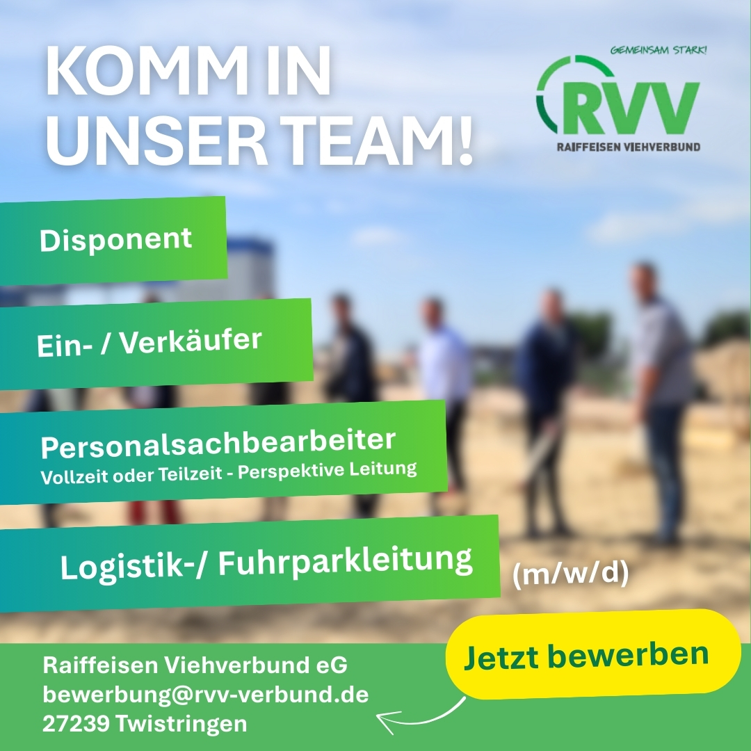 Die Raiffeisen Viehverbund eG entwickelt sich dynamisch weiter – und mit unserem Wachstum entstehen neue Chancen! Für unseren Standort in 27239 Twistringen suchen wir ab sofort engagierte Kolleginnen und Kollegen in folgenden Bereichen: