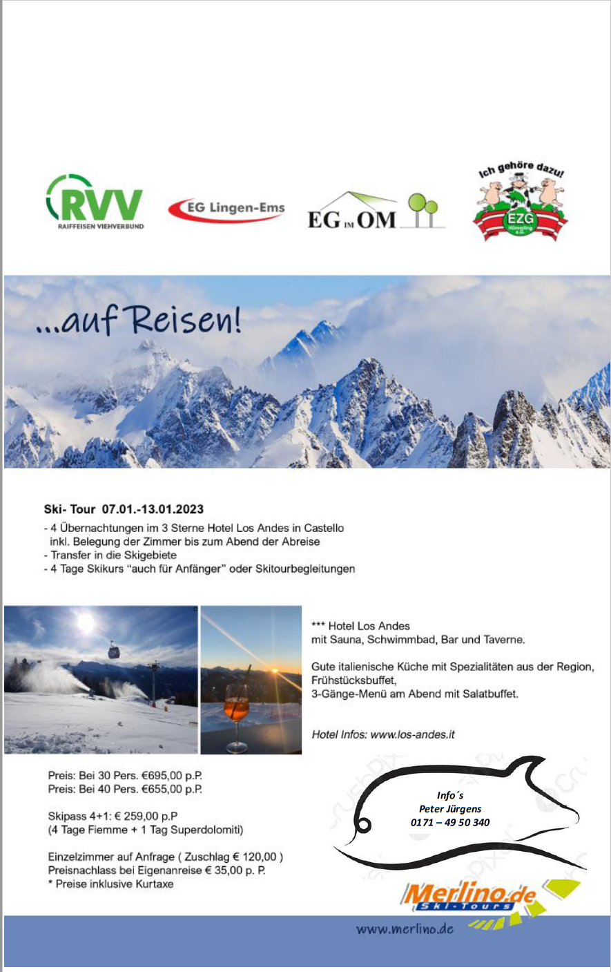 Gemeinsam mit unseren Partnern bieten wir unseren Mitgliedern und Kunden eine Ski-Tour nach Italien vom 07.01. - 13.01.2023 an.